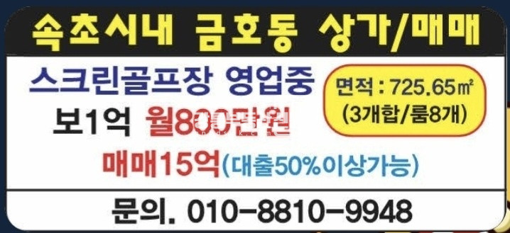 속초 시내  중심상권  보증금 1억/ 월 800만원 월세나옴 // 매매 15억