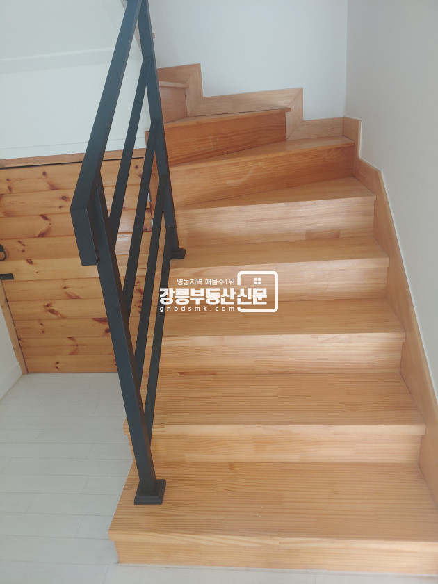 - 경포호수 인근의 신축급 내부복층 목조주택으로 1층 거실 겸 주방, 화장실1, 다용도실/2층 방2. 화장실1로 구성